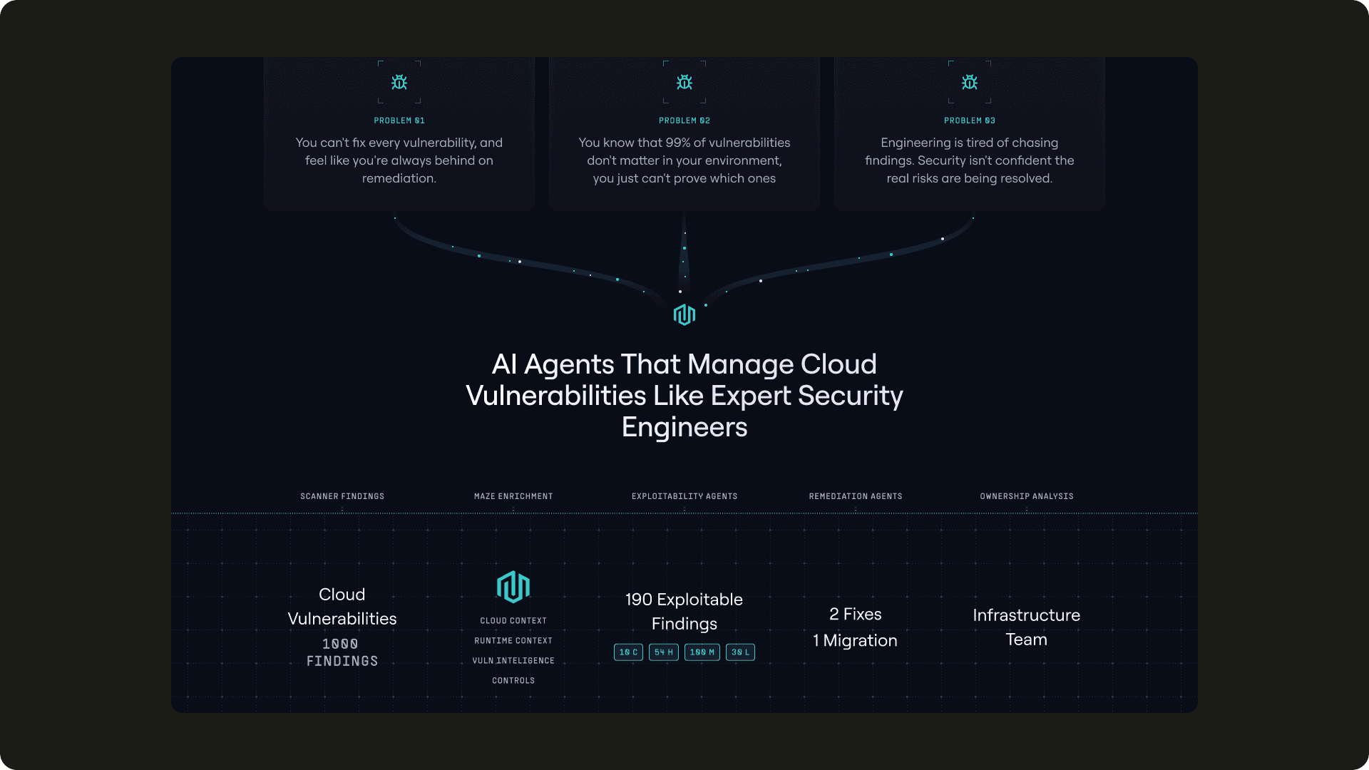 Modern security platform, AI agents that investigate and resolve cloud vulnerabilities. I've been working on refreshed brand guides, marketing assets, website exploration and created a bespoke tool using AI to speed up branded asset delivery.